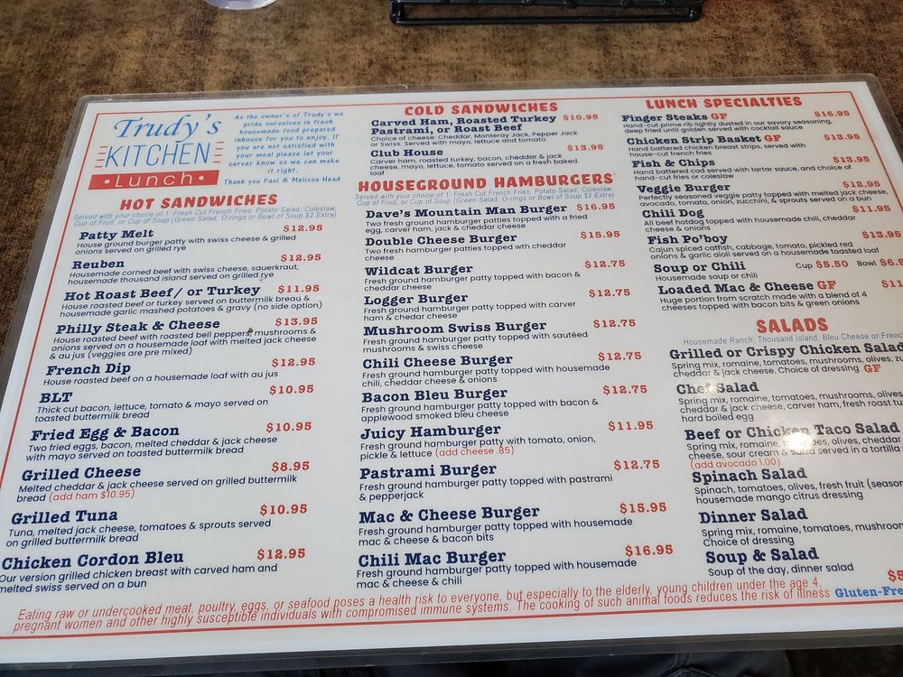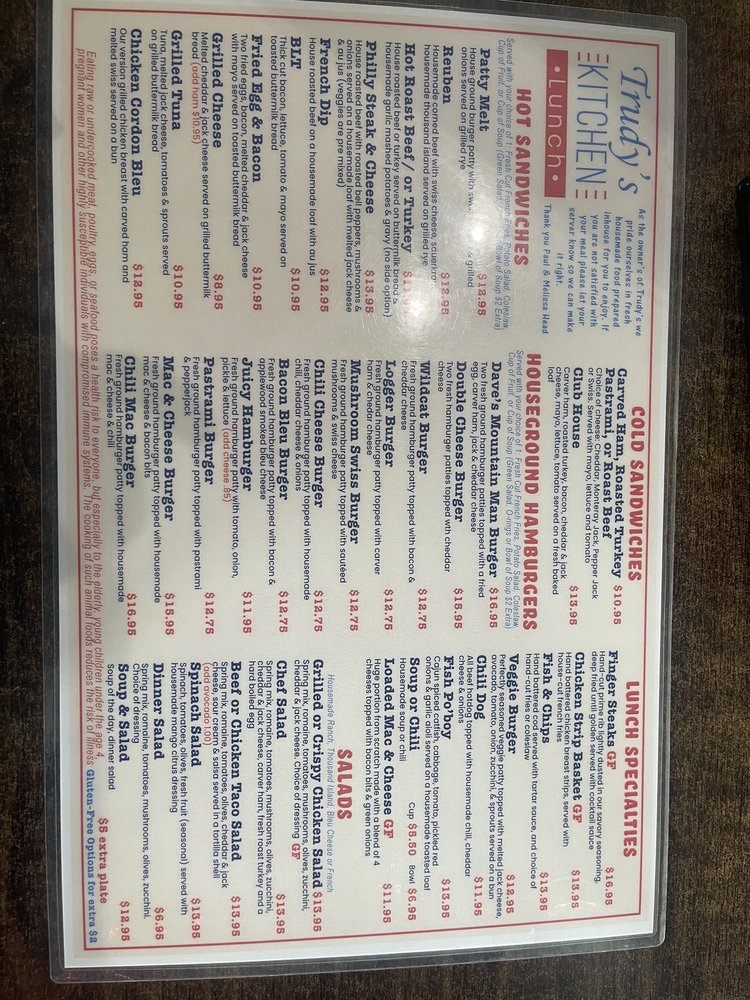 Trudy's Kitchen Menu